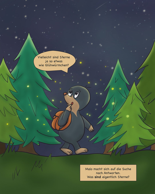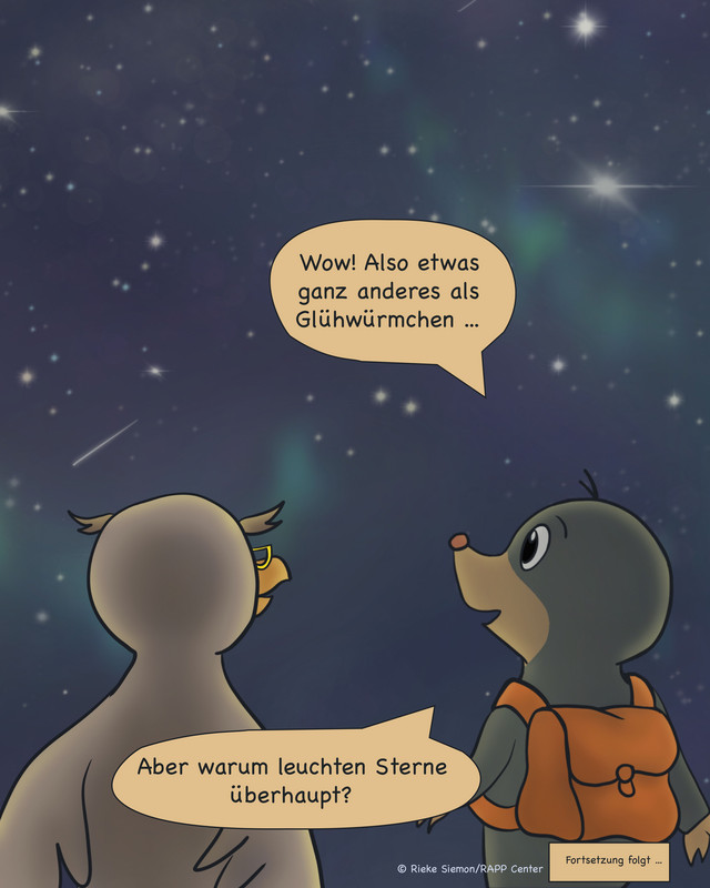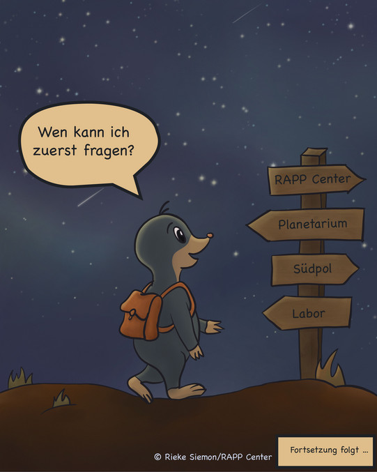 "Malo asks the Universe" is a webcomic created at the RAPP Center. Malo, a curious mole, wonders about the universe and the physics behind it. The comic answers his questions and links them to ongoing research at the RAPP Center. Concept, Illustration, and story by Rieke Siemon, RAPP Center.